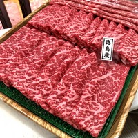 黒毛牛ローススライス 100g/890円(税込) ランクは一つさがりますが、 黒毛和牛より霜降りも少ないので 非常に食べやすい牛さん。 薄めにスライスしてあるのでしゃぶしゃぶにも もちろんすき焼きにも! |
